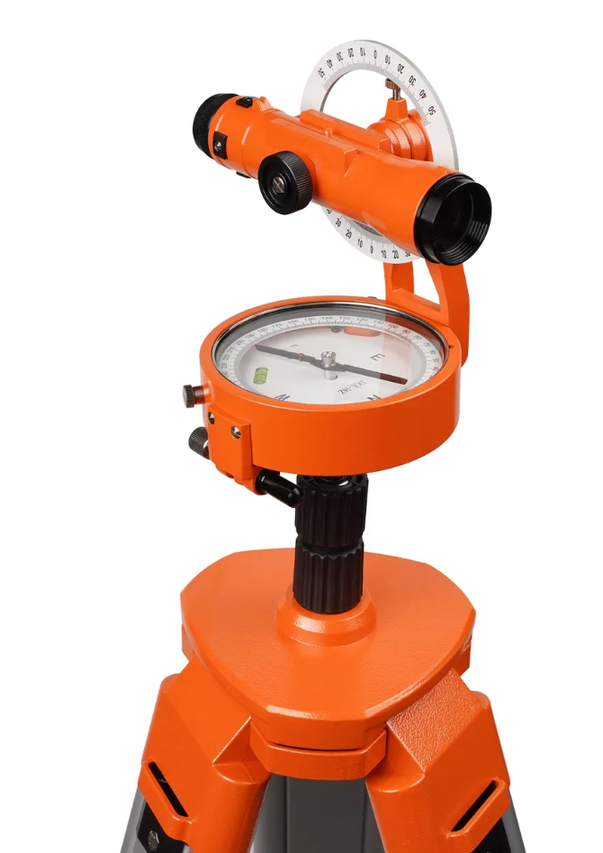 Магнитный компас устройства имеет шкалу с 360 делениями и возможностью вращения. Прибор имеет оптическую трубу с возможностью 16-кратного увеличения.
