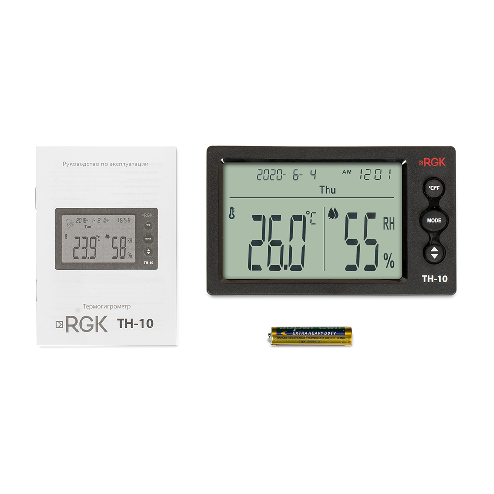 Цифровой термогигрометр RGK TH-10 предназначен для измерения температуры в диапазоне -10°С — + 50 °С и влажности в пределах от 20% до 90%. Функционал прибора удачно дополнен электронными часами с будильником.