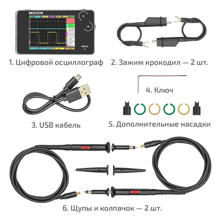 Представляем карманный цифровой осциллограф МЕГЕОН DS212 - компактное и удобное устройство, идеально подходящее как для профессионалов, так и для начинающий специалистов. Этот осциллограф сочетает в себе передовые технологии и простоту использования, что делает его отличным инструментом для анализа в различных областях.