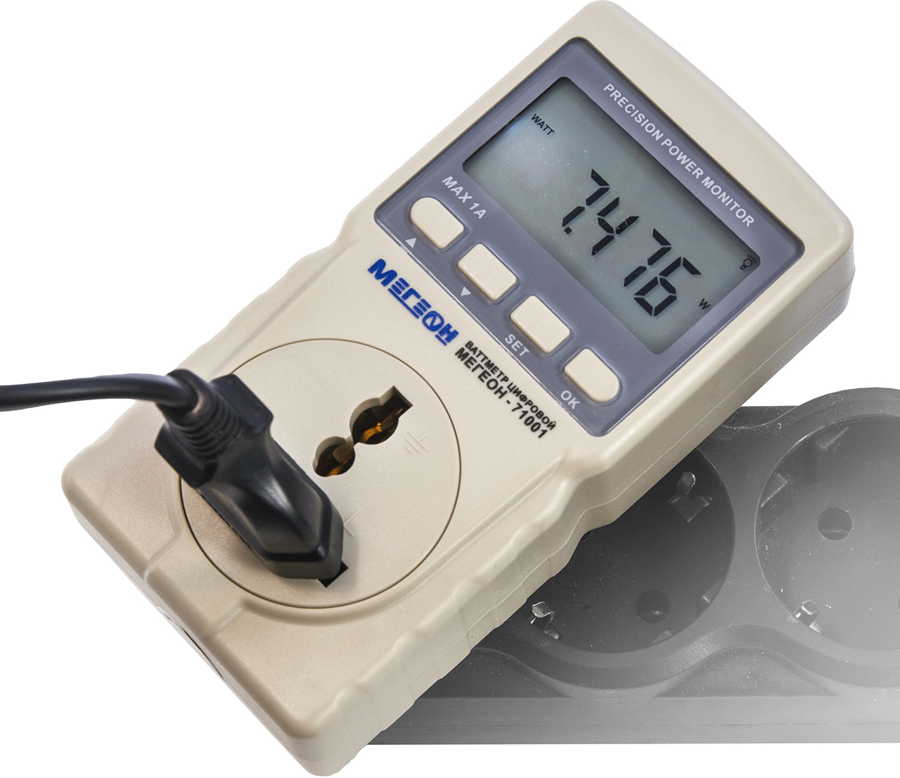 Ваттметр способен вычислять коэффициент мощности, отражающий эффективность использования электроэнергии. Пользователю предоставляется возможность настройки порога перегрузки для предотвращения перегрузок и увеличения срока службы прибора.