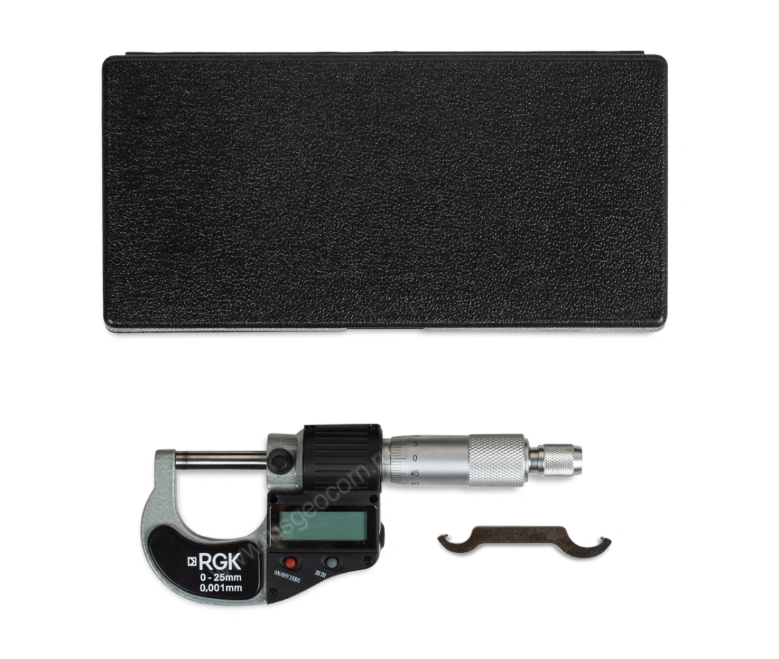 RGK MC-25 - высокоточный инструмент для измерения линейных параметров различных деталей и заготовок в диапазоне от 0 до 25 мм с разрешением 0.001 мм и допусками.