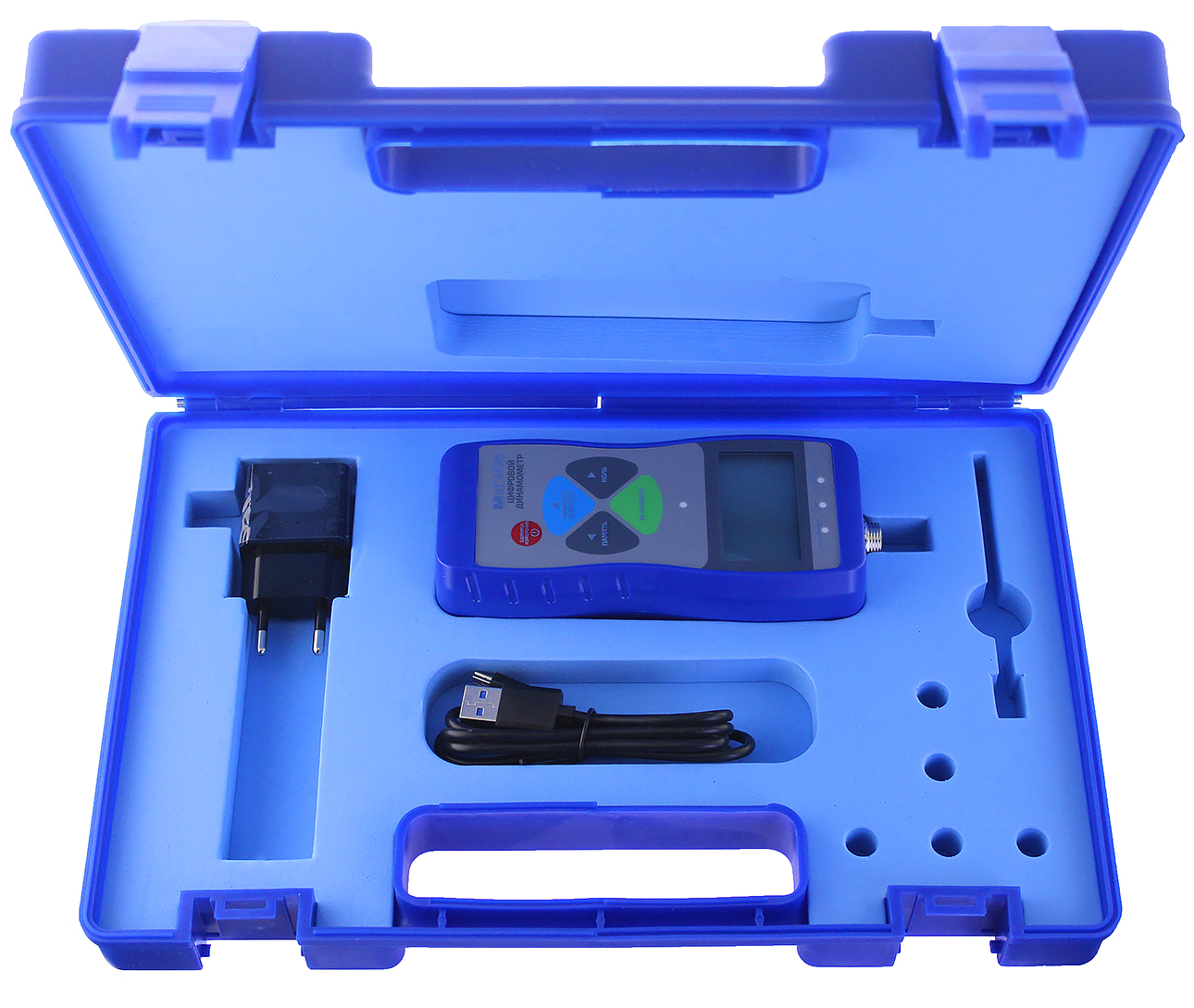 Фиксация пиковых значений; Встроенный литий-ионный аккумулятор; Память на 999 измерений; Вычисление минимального, максимального и среднего значений; Три единицы измерения; USB-порт для зарядки и связи с ПК; ЖК-дисплей с подсветкой; Управление внешними устройствами.